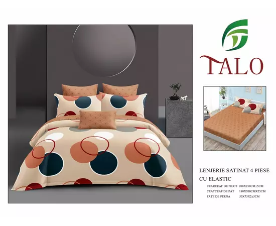 Lenjerie pentru pat dublu de 2 persoane, confectionata din bumbac satinat.