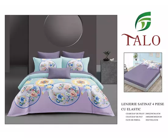Lenjerie pentru pat dublu de 2 persoane, confectionata din bumbac satinat.
