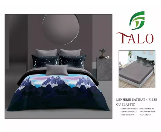 Lenjerie de Pat cu elastic 4 piese pat dublu, Bumbac Satinat - LIM108