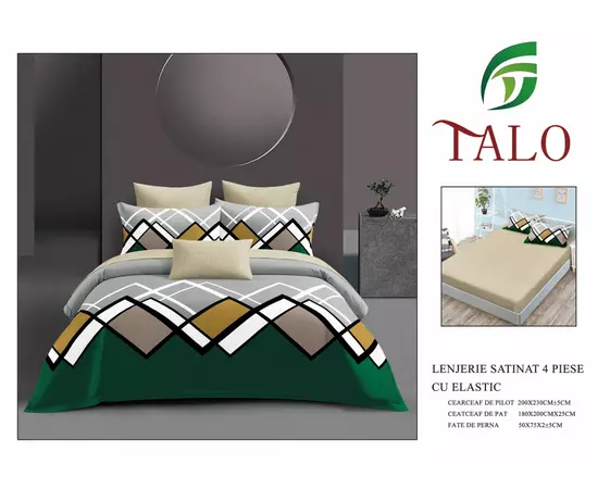 Lenjerie pentru pat dublu de 2 persoane, confectionata din bumbac satinat.
