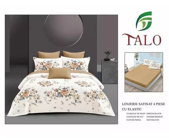 Lenjerie pentru pat dublu de 2 persoane, confectionata din bumbac satinat.