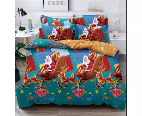 Lenjerie de pat cu imprimeu de Sarbatori - MOS CRACIUN - Poze REALE