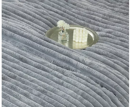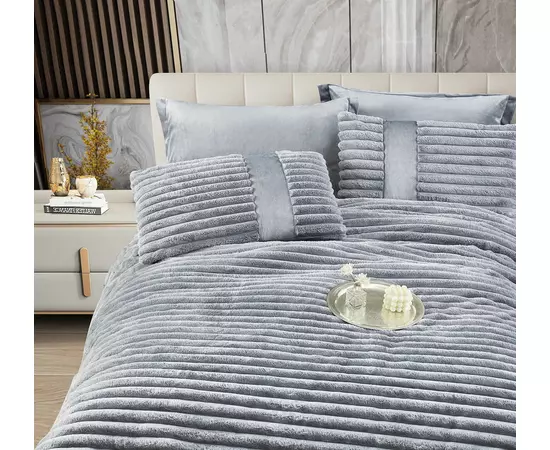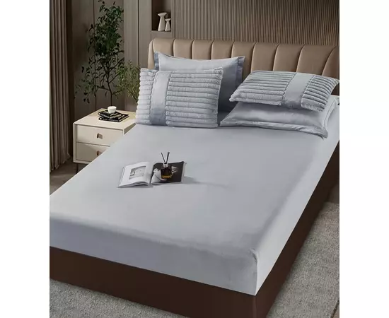 Lenjerie de Pat cu Pilota Inclusa , Cearceaf cu Elastic, 6 Piese, Blană de Iepure Artificială- JO866 Gri