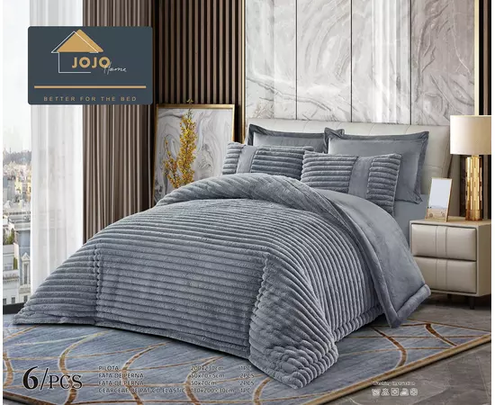 Setul este compus din 6 piese esențiale pentru a îmbrăca patul într-un mod complet: o pilotă moale și călduroasă, un cearceaf cu elastic pentru o potrivire perfectă pe salteaua ta, două fețe de pernă și două perne mari. Fiecare element este gândit pentru a aduce o senzație de rafinament și bun-gust în dormitorul tău.
