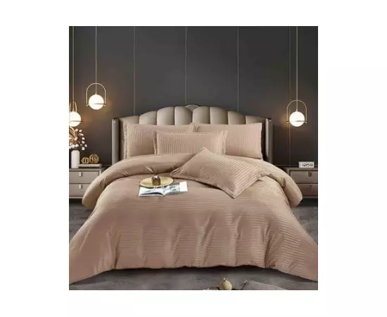 Lenjerie de Pat Damasc, 1 Persoana, 4 Piese, Cappuccino -JO248