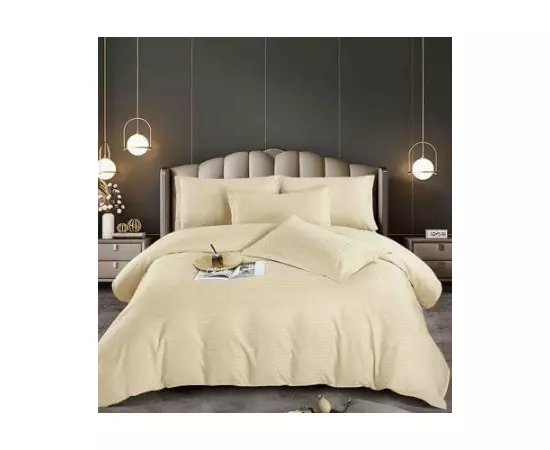 Lenjerie de Pat Damasc, 1 Persoana, 4 Piese, Cream -JO247
