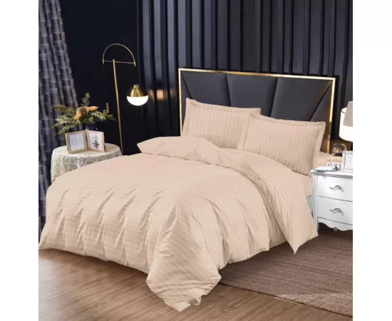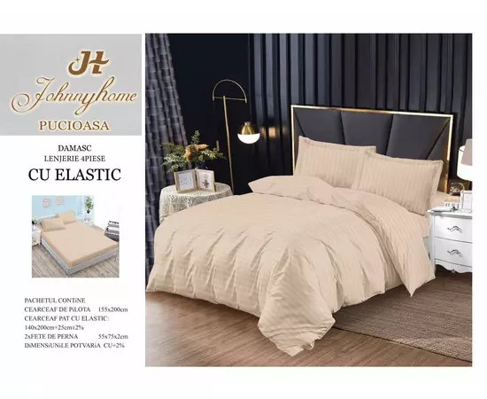 Lenjerie de Pat Damasc, 1 Persoana, 4 Piese cu Elastic, Cream - SIPRg-15