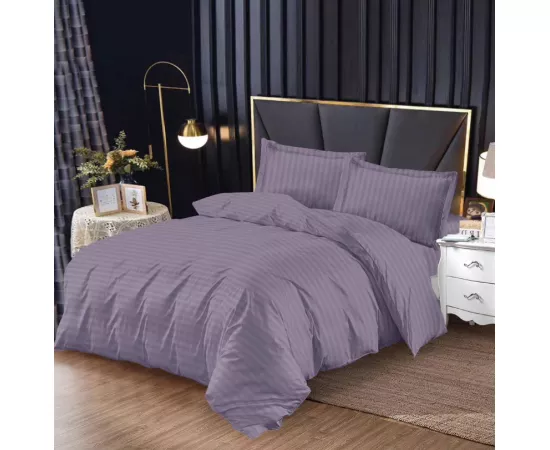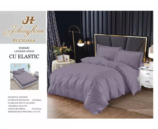 Lenjerie de Pat Damasc, 1 Persoana, 4 Piese cu Elastic, Lavanda Inchis - SIPRg-08