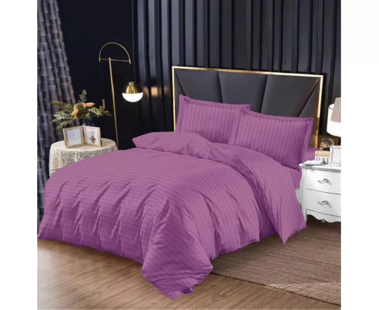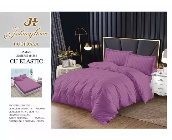 Lenjerie de Pat Damasc, 1 Persoana, 4 Piese cu Elastic, Mov - SIPRg-10