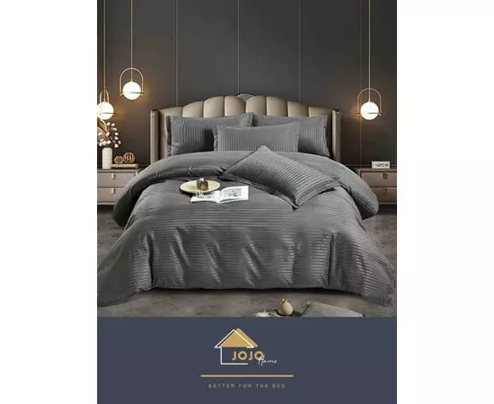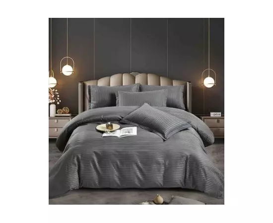 Lenjerie de Pat Damasc, 1 Persoana, 4 Piese, Gri inchis -JO245