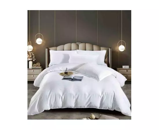 Lenjerie de Pat Damasc, 1 Persoana, 4 Piese, Alb -JO251