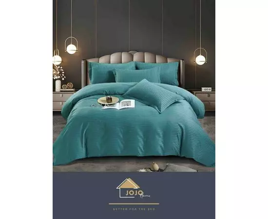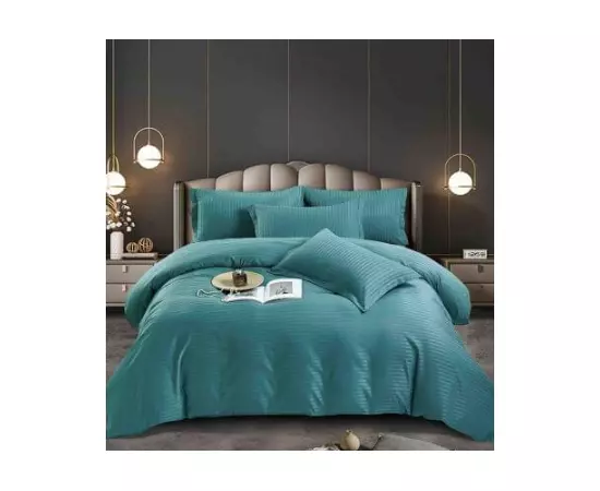 Lenjerie de Pat Damasc, 1 Persoana, 4 Piese, Turcoaz -JO241