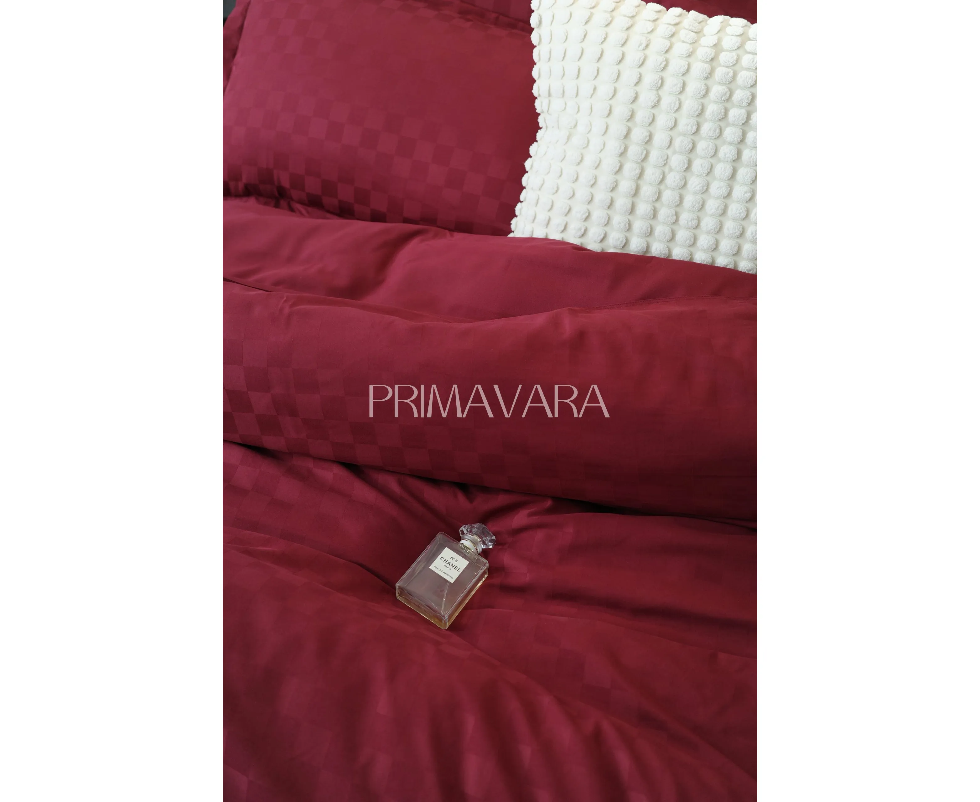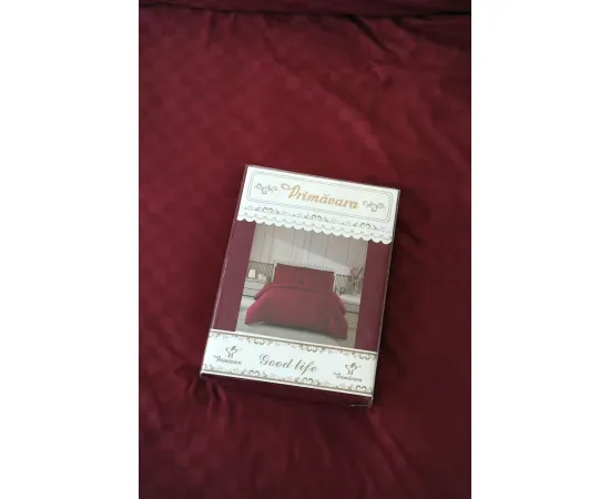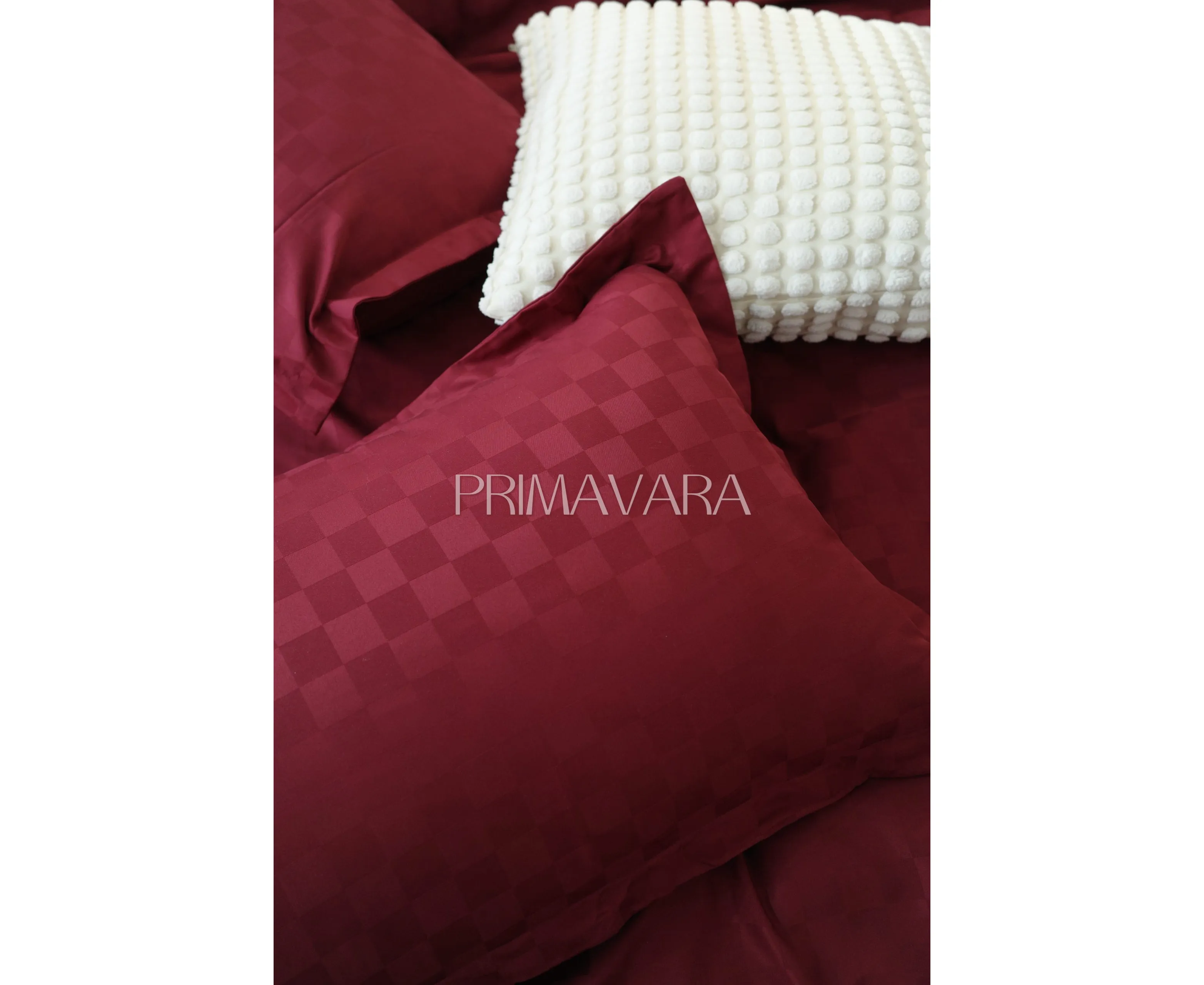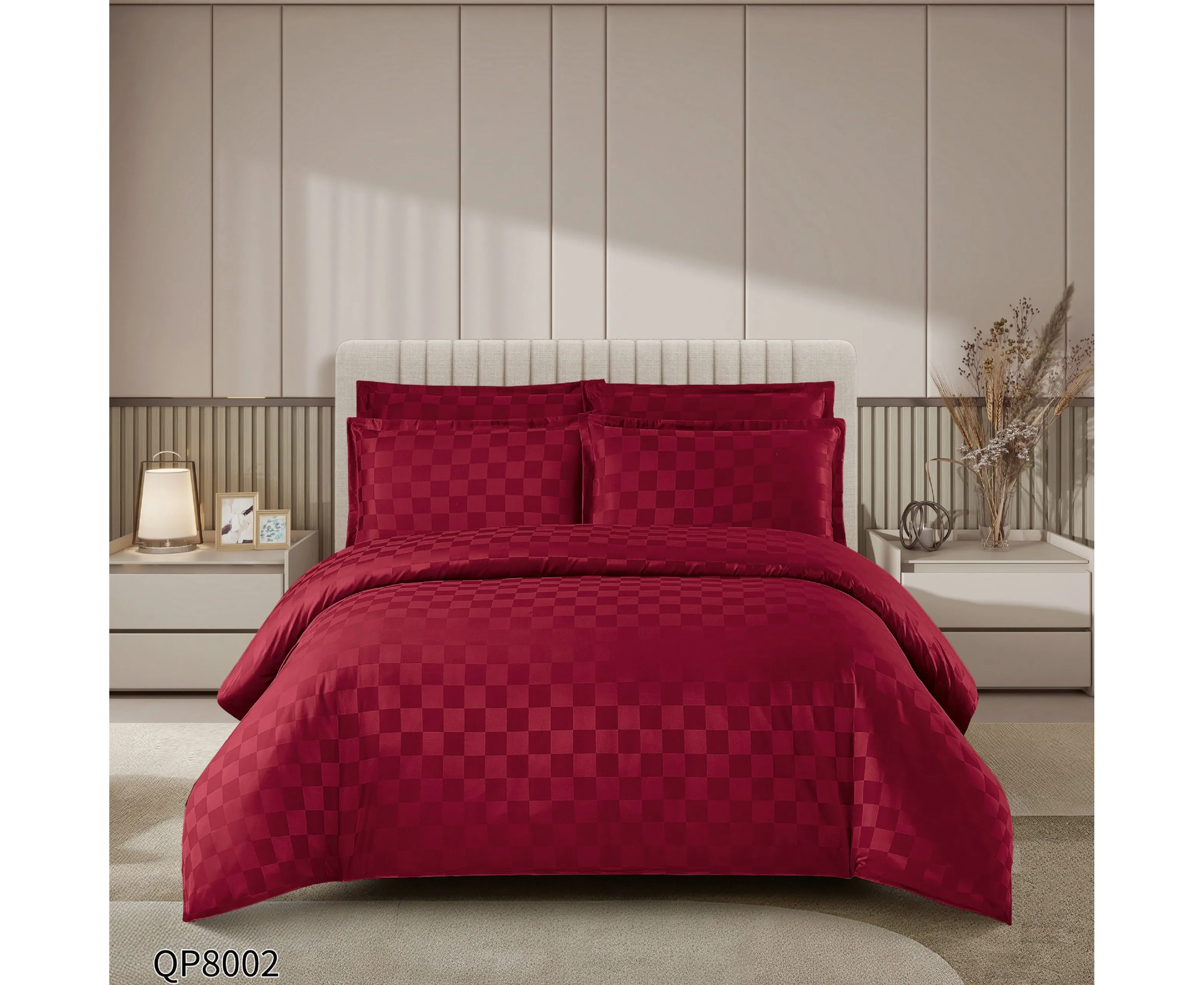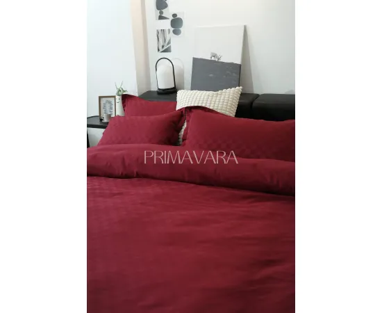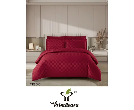 Lenjerie de Pat Damasc Finetat, cu Elastic, 4 Piese, Bordo - QP8002