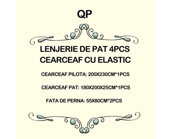 - Cearsaf de pat cu elastic::180×200 cm (pentru saltele de 20-25 cm).