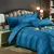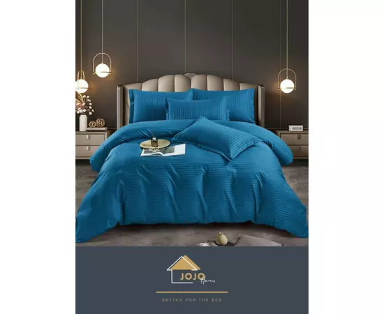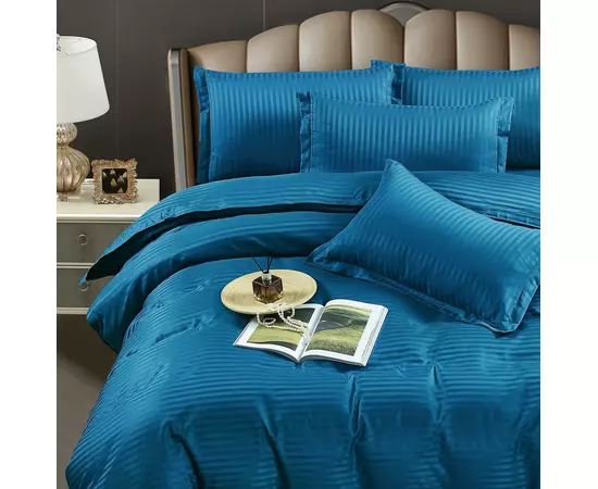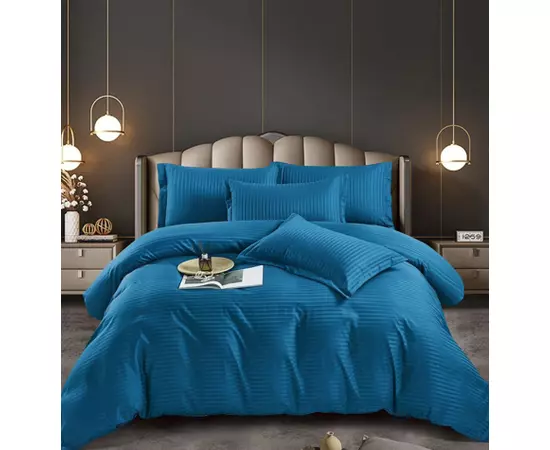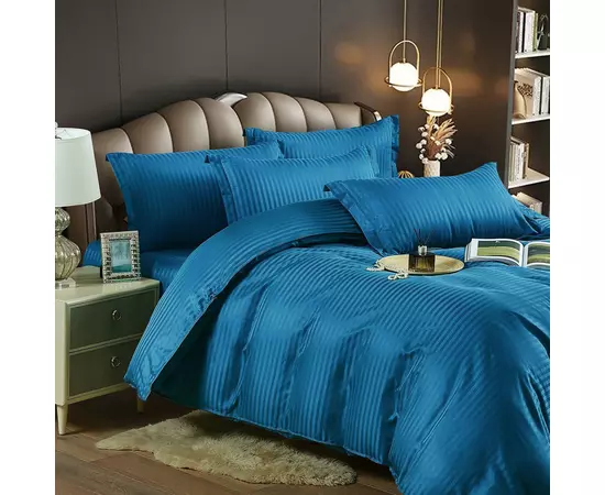 Lenjerie de Pat Damasc 6 Piese, Dungi Duble, Albastru Intens - JOJ798