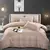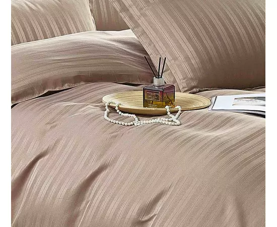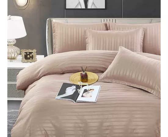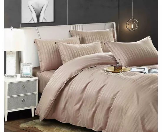 Lenjerie de Pat Damasc 6 Piese, Dungi Duble,Bej- JO334