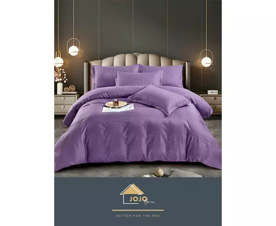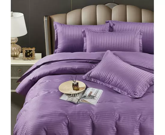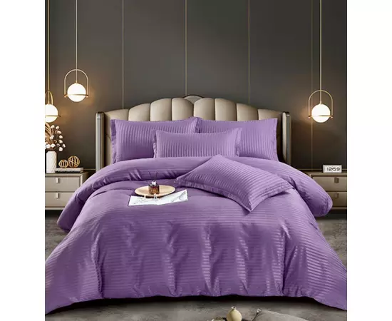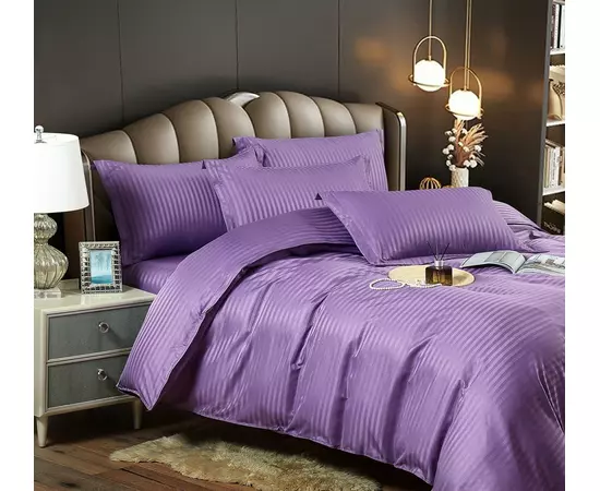 Lenjerie de Pat Damasc 6 Piese, Dungi Duble, Mov - JOJ793