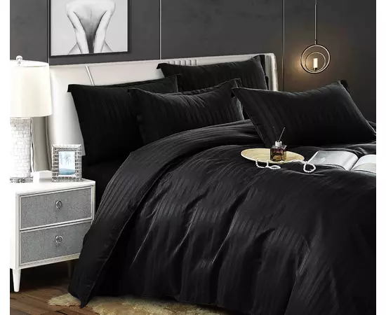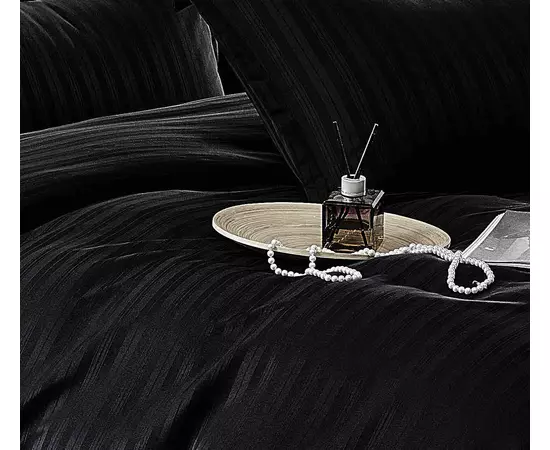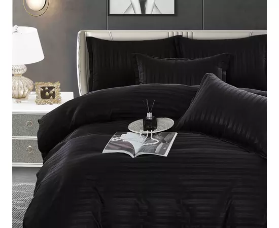 Lenjerie de Pat Damasc 6 Piese, Dungi Duble,Negru- JO337
