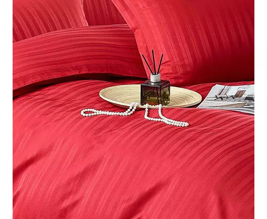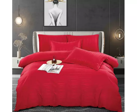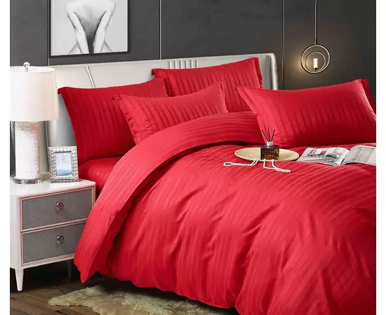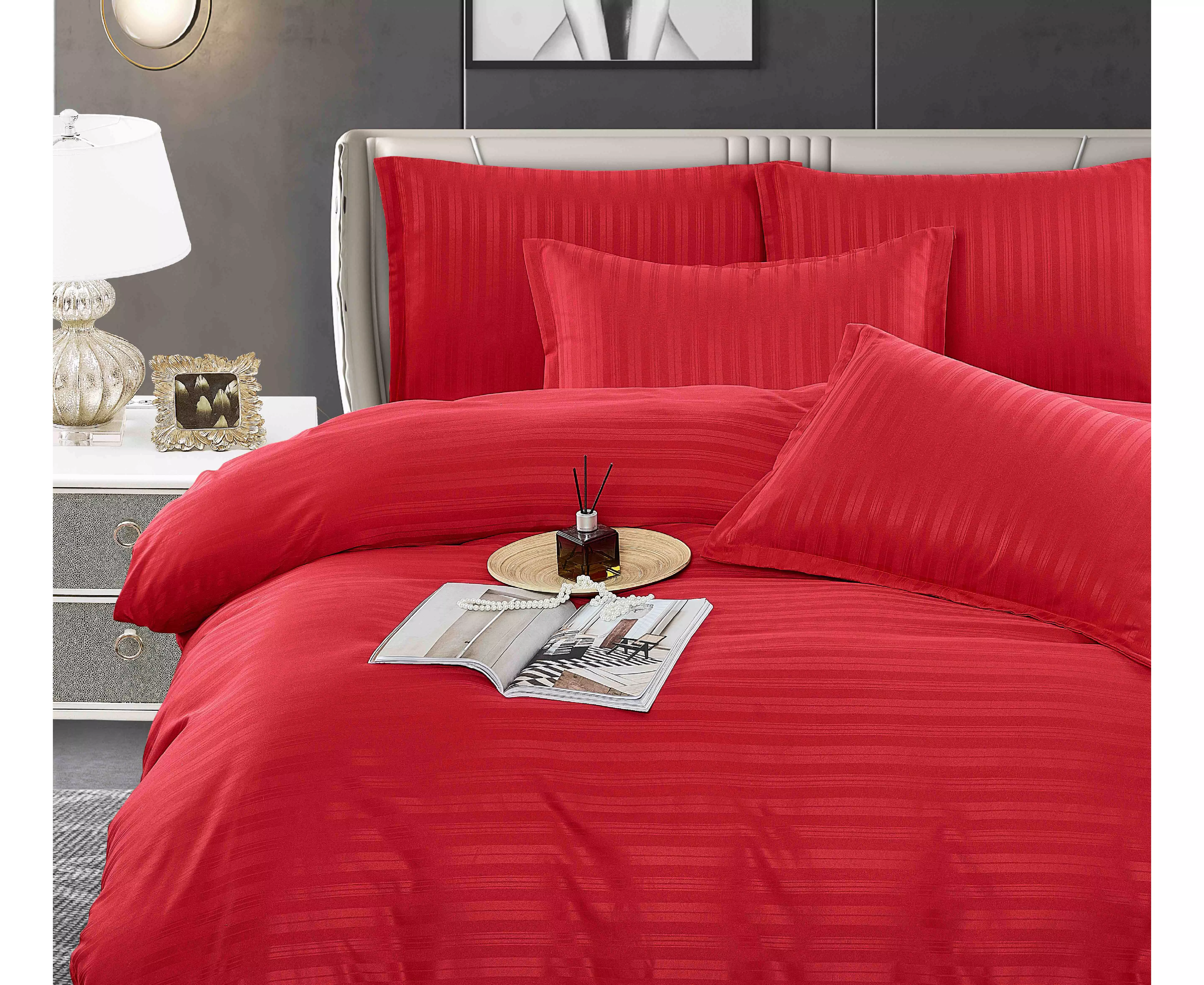 Lenjerie de Pat Damasc 6 Piese, Dungi Duble,Rosu- JO338