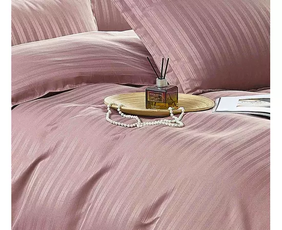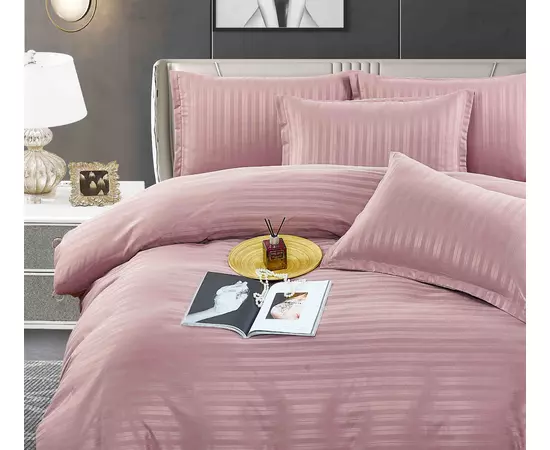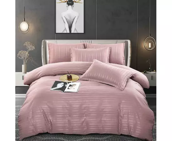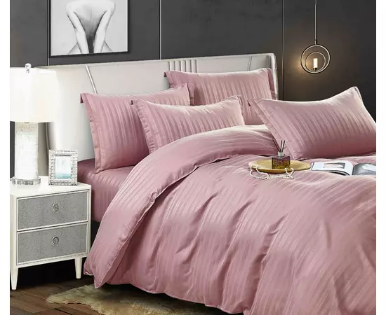 Lenjerie de Pat Damasc 6 Piese, Dungi Duble,Roz Pudra- JO335