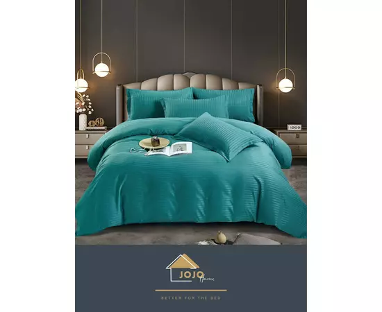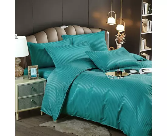 Lenjerie de Pat Damasc 6 Piese, Dungi Duble, Turquoise - JOJ791