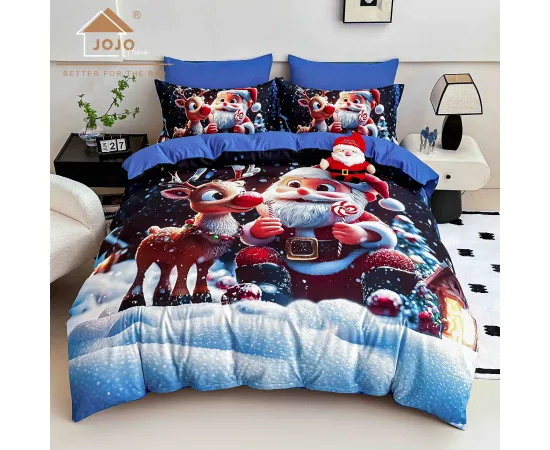 Lenjerie de pat de Craciun cu 6 Piese din finet, cu imprimare digitala 5D, Model JOJO8001