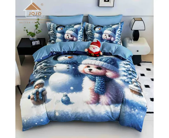 Lenjerie de pat de Craciun cu 6 Piese din finet, cu imprimare digitala 5D, Model JOJO8004