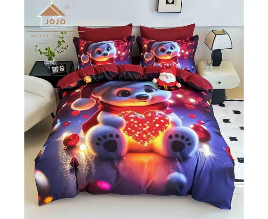 Lenjerie de pat de Craciun cu 6 Piese din finet, cu imprimare digitala 5D, Model JOJO8005