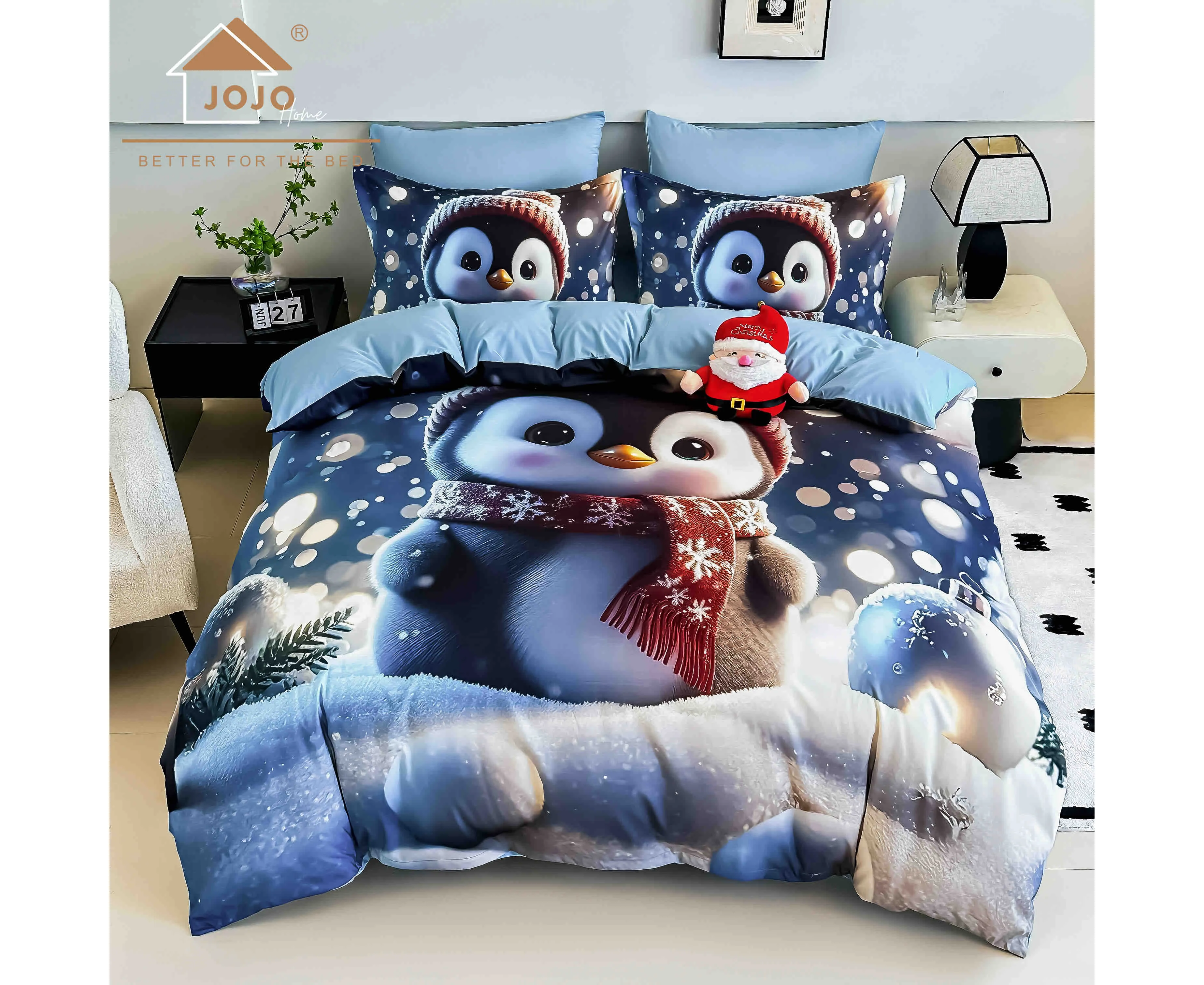 Lenjerie de pat de Craciun cu 6 Piese din finet, cu imprimare digitala 5D, Model JOJO8006