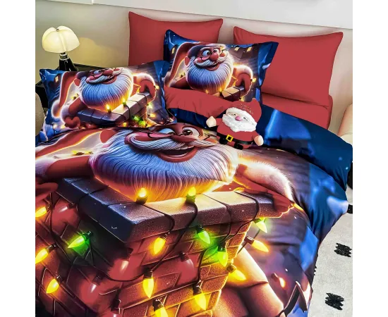 Lenjerie de pat de Craciun cu 6 Piese din finet, cu imprimare digitala 5D, Model JOJO8007