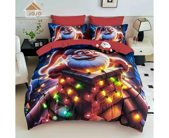 Lenjerie de pat de Craciun cu 6 Piese din finet, cu imprimare digitala 5D, Model JOJO8008