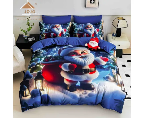 Lenjerie de pat de Craciun cu 6 Piese din finet, cu imprimare digitala 5D, Model JOJO8011