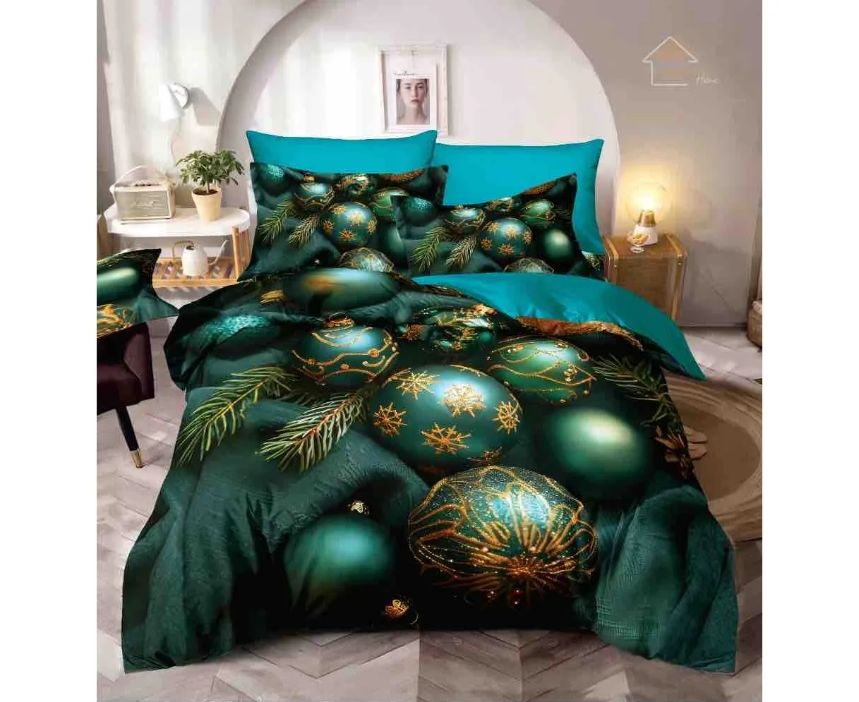Lenjerie de pat de Craciun cu 6 Piese din finet, cu imprimare digitala 5D, Model JOJO8016