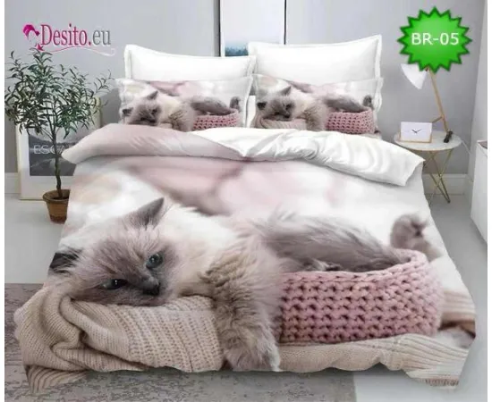Lenjerie de pat din bumbac finet 6 piese cu imprimeu 3D
