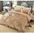 Lenjerie de Pat, din Catifea cu Broderie pentru Pat Dublu, 4 Piese, Maro Deschis - JOJ193