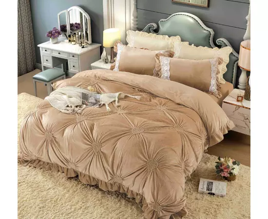 Lenjerie de pat din catifea, moale si catifelata, cromatica si design elegant, potrivit pentru orice tip de dormitor.