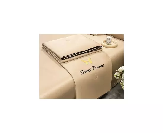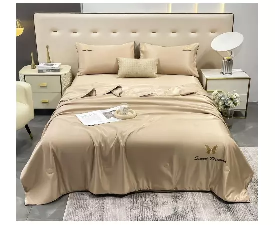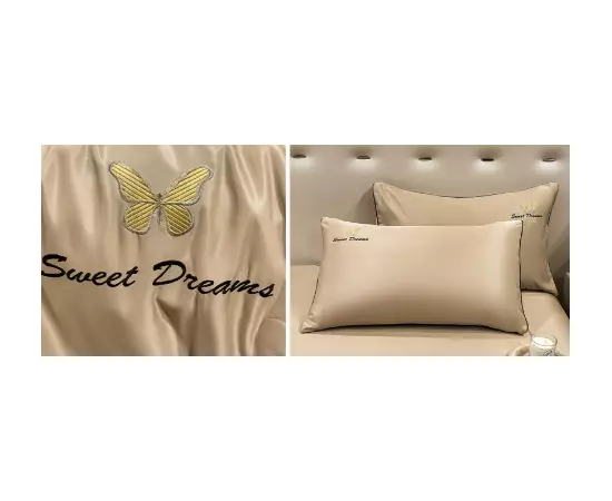 Lenjerie de Pat din Matase cu Pilota, 4 Piese pentru Pat Dublu - Bej - SIPRL-01