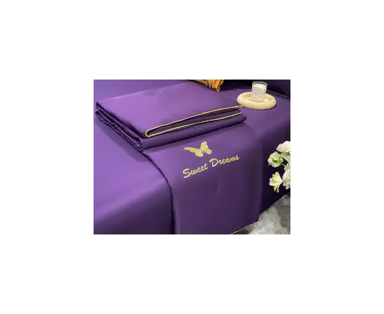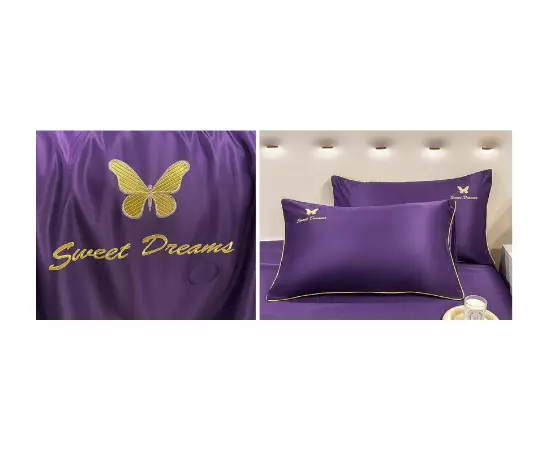 Lenjerie de Pat din Matase cu Pilota, 4 Piese pentru Pat Dublu - Mov - SIPRJ-01