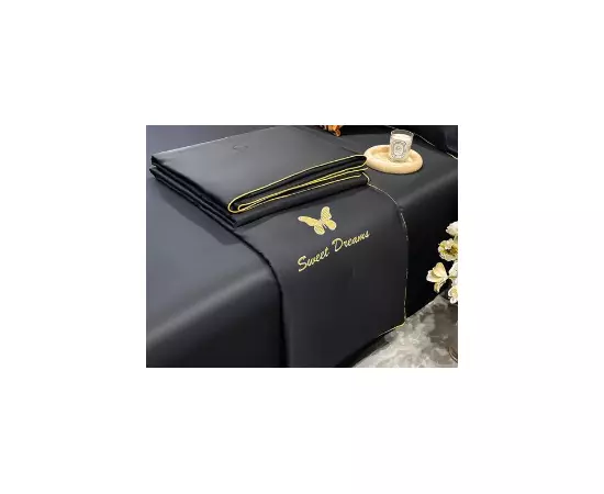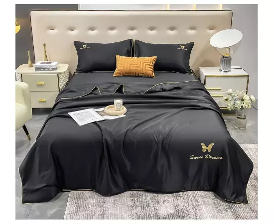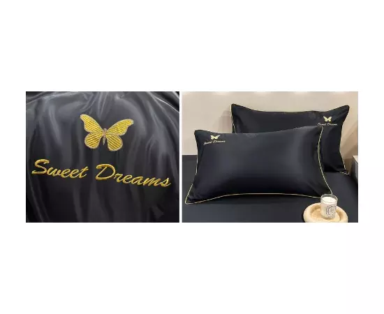 Lenjerie de Pat din Matase cu Pilota, 4 Piese pentru Pat Dublu - Negru - SIPRH-01