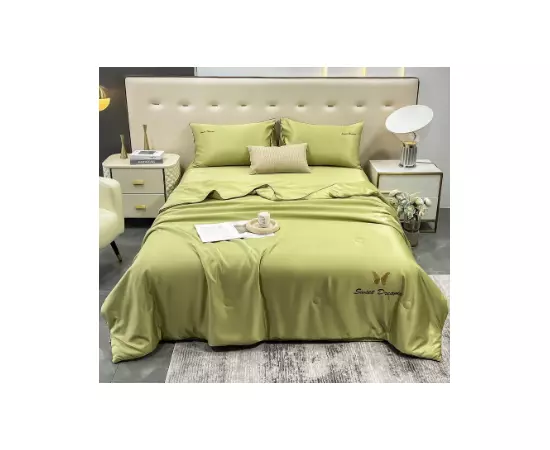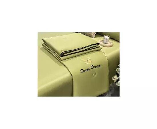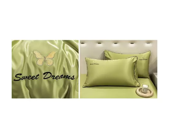 Lenjerie de Pat din Matase cu Pilota, 4 Piese pentru Pat Dublu - Verde Olive - SIPRN-01