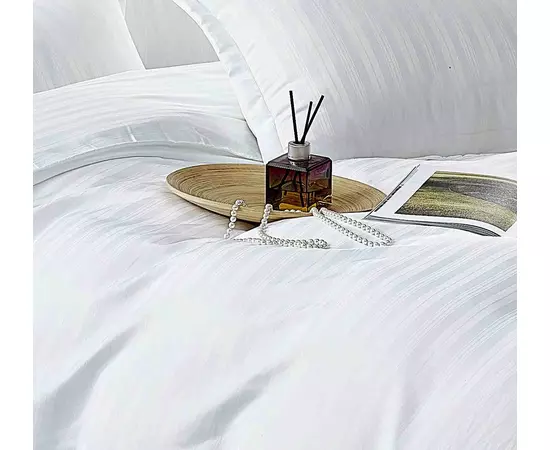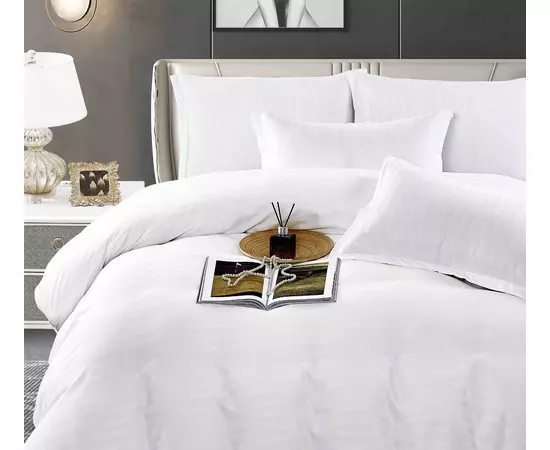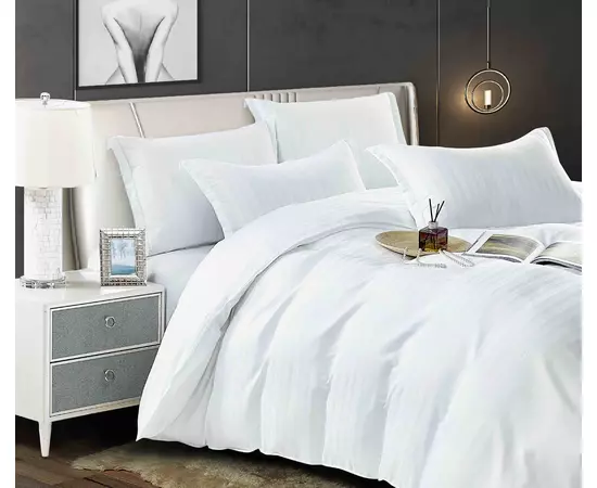 Lenjerie de Pat Damasc 6 Piese, Dungi Duble,Alb- JO333