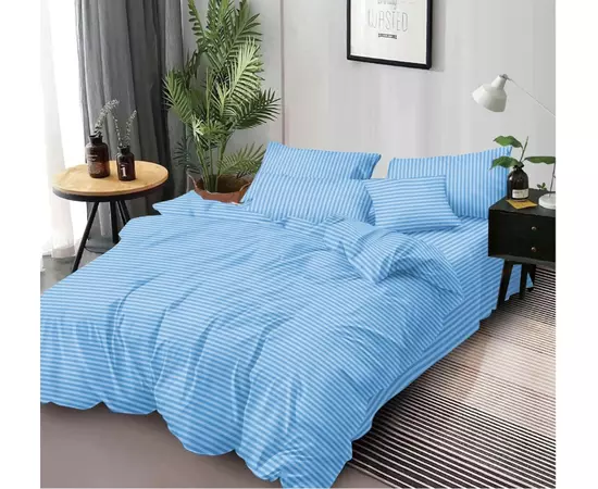 Lenjerie de pat dublu Bumbac Damasc 4 Piese, Blue - PUC153