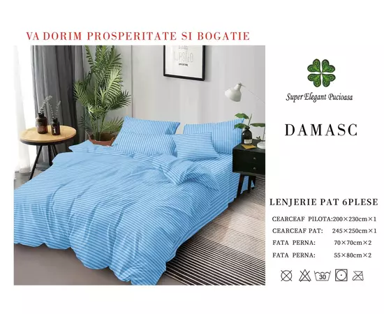 ATENTIE : Imaginea lenjeriei damasc este pentru prezentare, astfel pot exista mici diferente intre fotografie si realitate, in functie de setarile monitorului dvs.