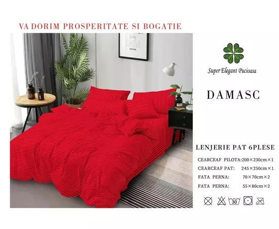 ATENTIE : Imaginea lenjeriei damasc este pentru prezentare, astfel pot exista mici diferente intre fotografie si realitate, in functie de setarile monitorului dvs.