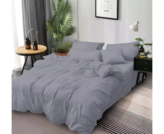 Lenjerie de pat dublu Bumbac Damasc 4 Piese, Gri Inchis - PUC159