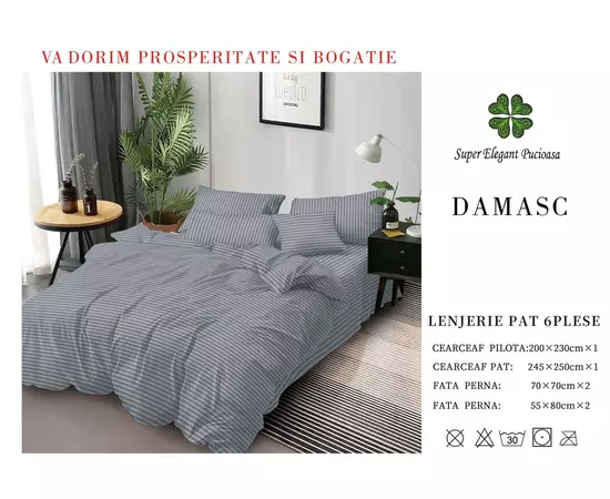 ATENTIE : Imaginea lenjeriei damasc este pentru prezentare, astfel pot exista mici diferente intre fotografie si realitate, in functie de setarile monitorului dvs.