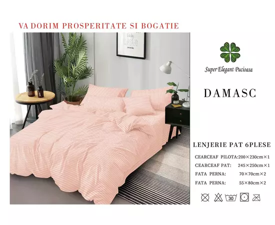 ATENTIE : Imaginea lenjeriei damasc este pentru prezentare, astfel pot exista mici diferente intre fotografie si realitate, in functie de setarile monitorului dvs.