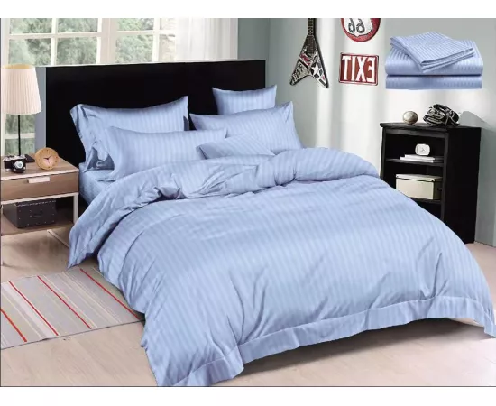 Lenjerie de pat dublu Bumbac Damasc 4 Piese, Blue - ION67