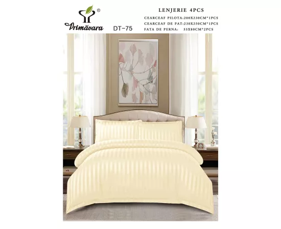 Lenjerie de pat dublu Bumbac Damasc 4 Piese, Unt- CPL2