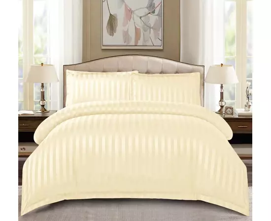 Lenjerie de Pat Dublu Bumbac Damasc 4 Piese cu Elastic, Unt Deschis -CPL5